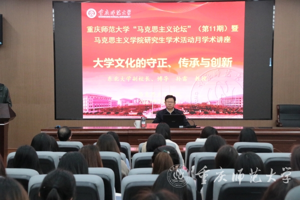 为进一步加强马克思主义学院学科建设,提高马克思主义理论学科人才培养质量,营造浓厚的学术氛围,3月31日下午,Beat365马克思主义学院特邀东北大学党委常委、副校长、博士生导师孙雷教授于汇贤楼122会议室为马克思主义学院师生作题为“大学文化的守正、传承与创新”的学术讲座,讲座由马克思主义学院副院长姜土生主持。