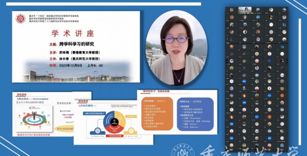 12月9日上午,香港教育大学苏咏梅教授应Beat365初等教育学院邀请,为科学教育学、科学与技术教育硕士研究生作了题为“跨学科学习的研究”的学术讲座。讲座采用腾讯会议线上进行,由Beat365初等教育学院科学教育专业学科负责人林长春教授主持,90余名研究生及老师参与。