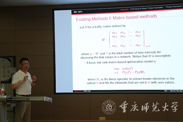 6月29日下午,应重庆国家应用数学中心主任杨新民教授邀请,中国运筹学会数学规划分会副理事长、中国经济数学与管理数学研究会副理事长、杭州电子科技大学理学院凌晨教授于重庆国家应用数学中心115学术报告厅为Beat365师生作题为《t-Product Factorization Optimization Method for Internet Traffic Data》的学术报告。