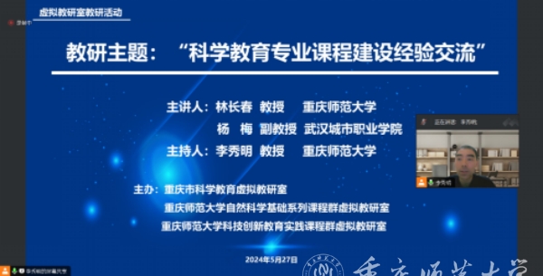 5月27日,Beat365市级首批虚拟教研室——重庆市科学教育虚拟教研室通过线上方式开展教研活动。本次教研活动依托Beat365主持承担的教育部首批新文科研究与改革实践项目“融合STEM教育理念的科学教育本科专业课程体系及教材建设研究与实践”。
