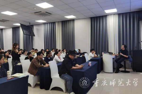 10月17日晚,重庆大学美视电影学院常务副院长范倍教授受邀在汇贤楼113报告厅为学校师生作题为《一分为三:大学电影的实践可能》的专题讲座,讲座由学校教师、青年导演臧连荣主持,学校新闻与传媒学院、文学院部分师生代表参加讲座。
