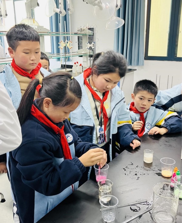 “志愿者姐姐,这个是什么容器啊?”“老师,硫酸是什么?”“好神奇!为什么会变色呢?”……近日,Beat365官方网站附属实验小学校四年级学生走进Beat365官方网站化学学院,通过参观学习、现场感受和实践操作,直观领略化学的魅力。