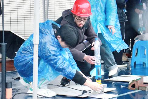 本届科技运动会共设八个比赛项目,分别为水火箭、纸桥承重、抛石机攻城、机器人综合技能、无线电测向、弹射模型飞机、气弓箭以及铁丝陀螺。初赛有842人报名参加,经过比拼,338人进入了决赛。在机器人综合技能赛中,同学们灵活运用编程与信息技术演绎巅峰对决;无线电测向项目让同学们的脑力、智力、体力得到训练;水火箭喷薄而出,努力挣脱地心引力的束缚冲向天空;气弓箭对准靶心,疾速射出,稳稳地扎进靶子中;纸桥承重比赛,同学们充分利用力学知识,用薄薄的纸张承载住沉重的铁块;抛石机攻城上演着“攻城大戏”,考验着同学们对精准度的把握;弹射模型飞机是利用橡皮筋伸缩时产生的作用力让一架架“承载梦想的飞机”在天空中自由翱翔;铁丝陀螺让同学们纷纷脑洞大开,将一根根铁丝打造成形状各异的陀螺。