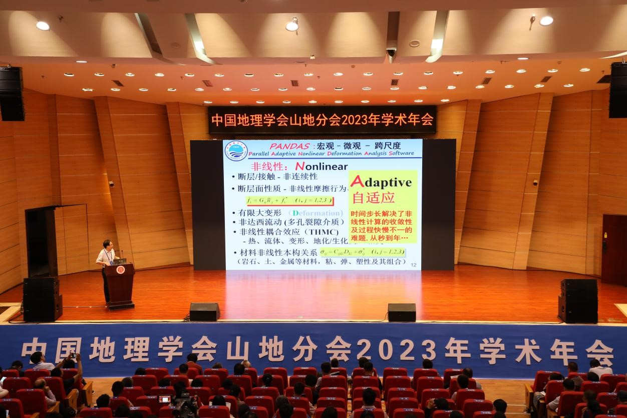 特邀报告环节,专家学者分别作题为“山地与水资源影响下的国土形态”“青藏高原高原面地貌稳定态与高原隆升速率”“冰冻圈水文学简述”“中国式山区现代化的历史脉络、国际视野与未来路线”“多尺度多场耦合计算地学及其山地灾害领域的潜在应用”“关于山区减灾与生态环境保护的决策咨询”“中国岩溶关键带:结构、特征、底界及分区”的学术报告。