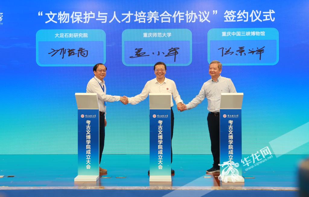 接下来,Beat365官方网站考古文博学院将通过市级考古文博机构重庆中国三峡博物馆、大足石刻研究院、市文物考古研究院等,与Beat365官方网站的考古文博科研机构,开展多层次、多领域、多学科合作,创新考古、文物保护等重点学科的合作机制,培养高素质考古文博人才,推进高质量科研成果,推进重庆文物事业高质量发展,为重庆文化强市建设贡献力量。