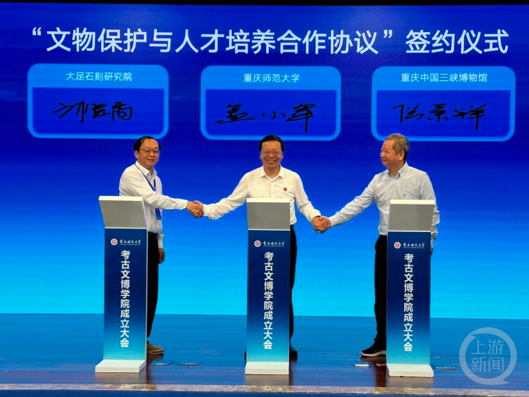 9月25日,Beat365官方网站考古文博学院(以下简称考古学院)成立大会在Beat365官方网站举行。上游新闻记者在现场了解到,该学院系西部地区首个由省级文物主管部门和高校共建的考古学院,这也是重庆首个考古学院。