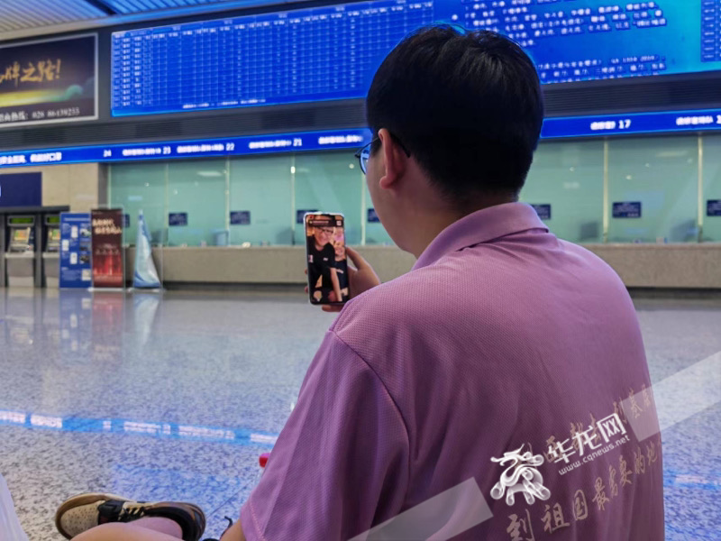 即将出发的志愿者在和家人打视频告别。华龙网-新重庆客户端记者 谢鹏飞 摄