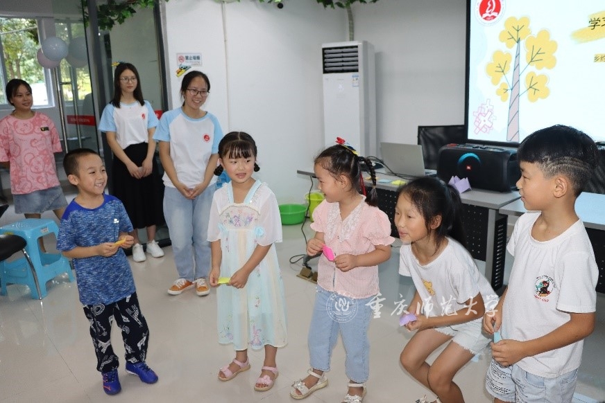 据了解,本次活动以进行趣味游戏,观看红色动画短片、分享感受、讲述红色故事、学习红色文化以及推广学习普通话为主。服务团组成员通过带领小朋友们观看且简要讲解红色动画《那年那兔那些事》来了解新中国应对各种大事件的态度和做法,又通过萝卜蹲、排雷行动和抢占先机三个趣味游戏向小朋友们播撒爱国主义教育的红色种子,弘扬民族自信,学习普通话,增强文化自信。