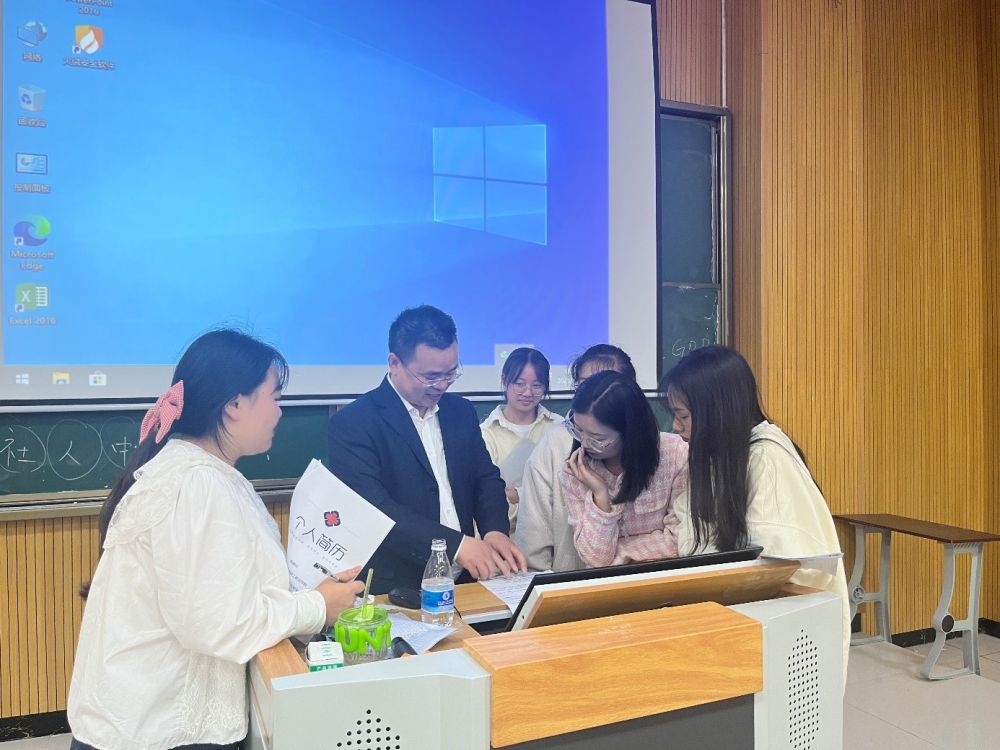 2023年5月10日,重庆高校就业创业指导专家库成员文军在重庆轻工职业学院就业巡讲结束后,现场为学生指导修改求职简历。(段晓欣 摄)