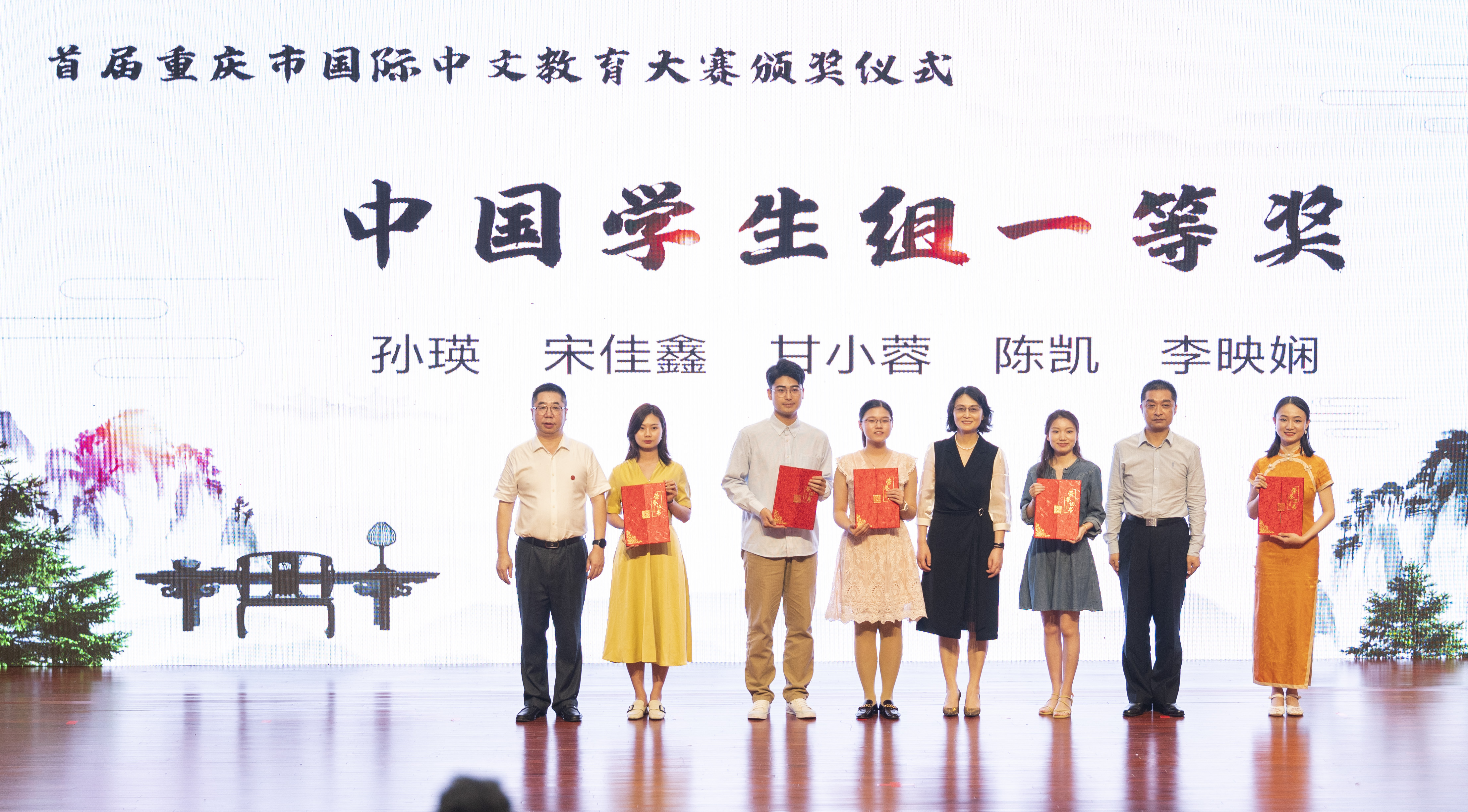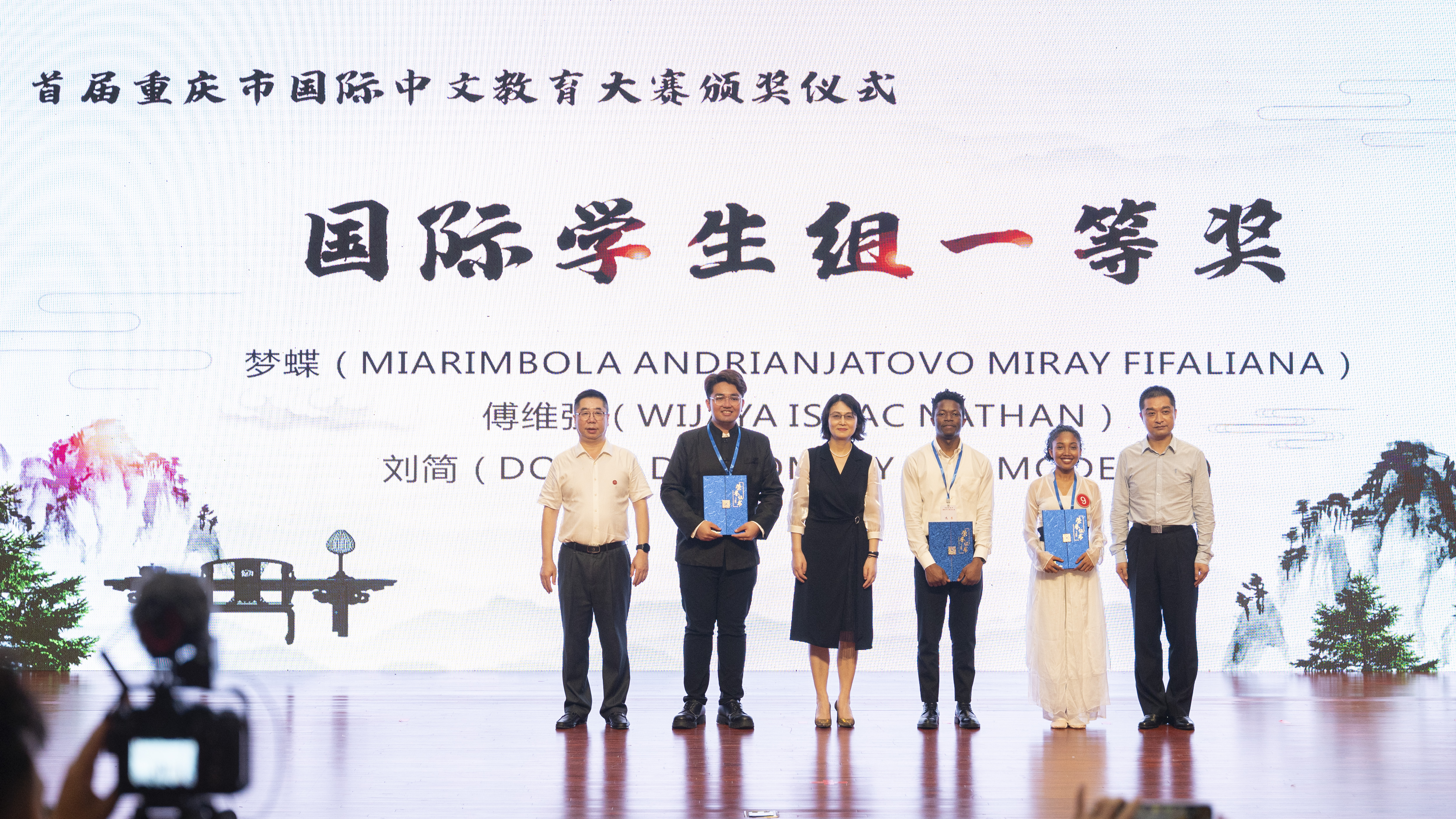 ▲6月1日,首届重庆市国际中文教育大赛决赛国际学生组一等奖颁奖现场。记者 解小溪/摄