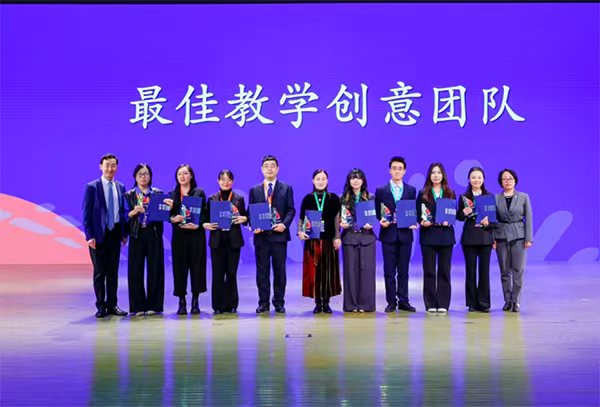 “最佳教学创意团队”颁奖现场,右三为文学院学生团队代表。文学院供图